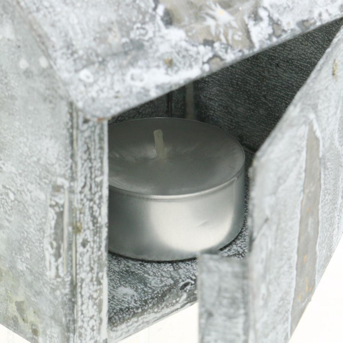 Windlicht Haus Metall Shabby Chic Weiß gewaschen, Rost H11cm
