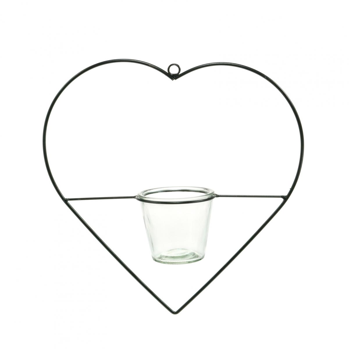 Windlicht Herz Metall 28cm Teelichthalter zum Hängen Glas 9cm