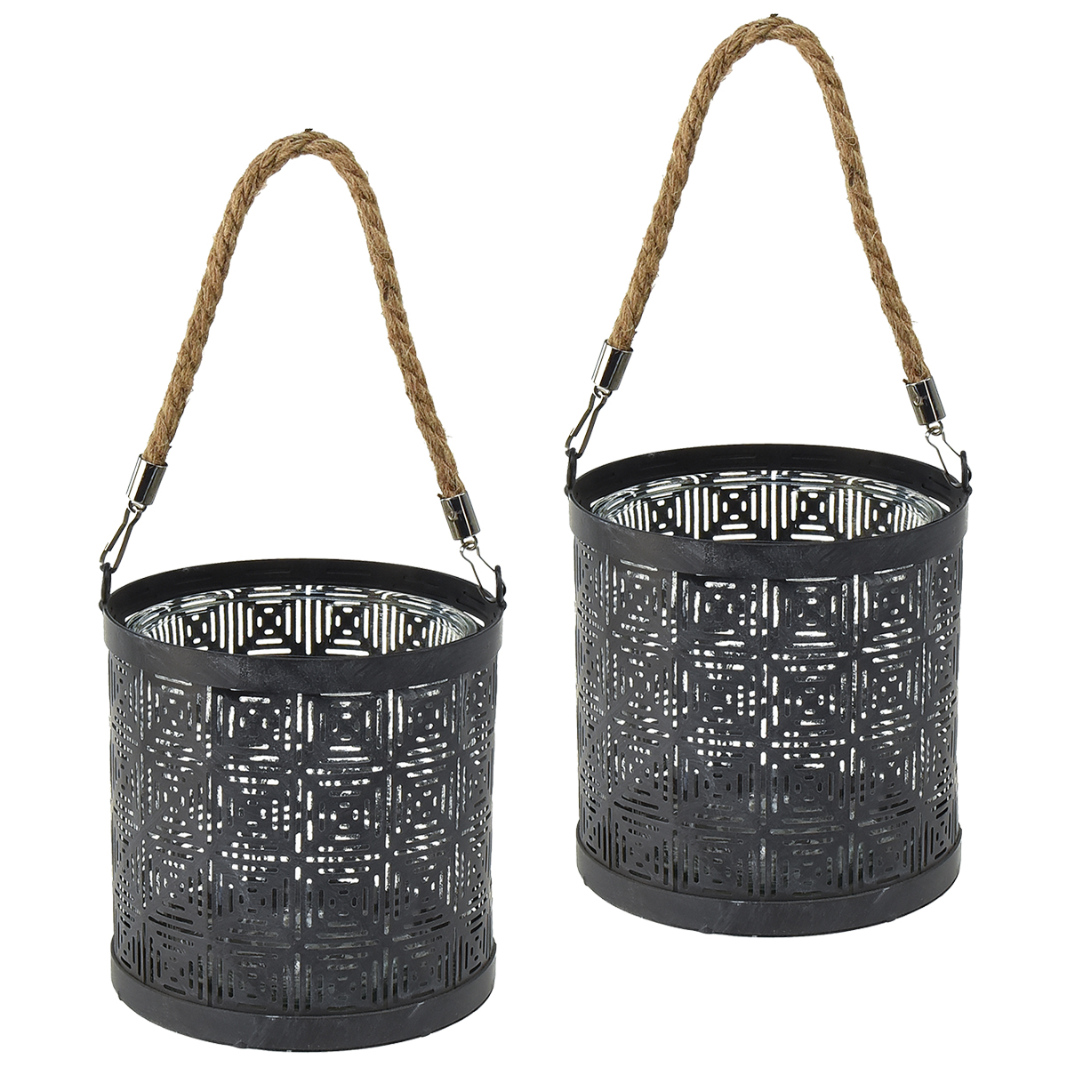 Erleuchten Sie Ihr Zuhause oder Ihren Garten mit diesem zweiteiligen Windlicht Set Anthrazit. Diese stilvolle Deko Laterne aus Metall verzaubert mit ihrem antiken Look und dem filigranen Muster, das für einzigartige Lichteffekte sorgt. Ob als Tischdekoration bei Sommerfesten oder als sanfte Lichtquelle im Wohnzimmer – diese Laterne Metall mit Henkel schafft in jedem Ambiente eine einladende Atmosphäre.