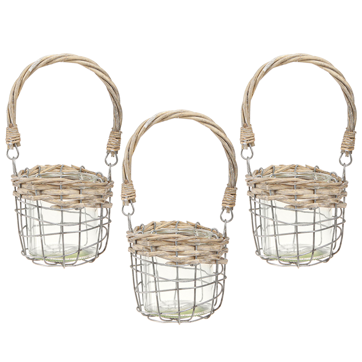 Windlicht Teelichthalter Glas Metall Weide Ø10,5cm 3St