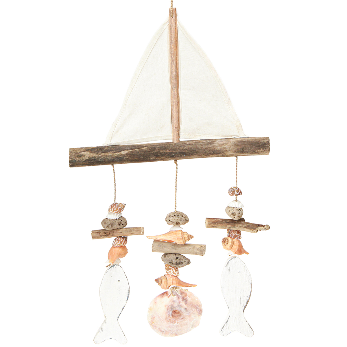 Produktname: Windspiel Segelschiff Deko Fisch Holz Weiß Natur H56cm