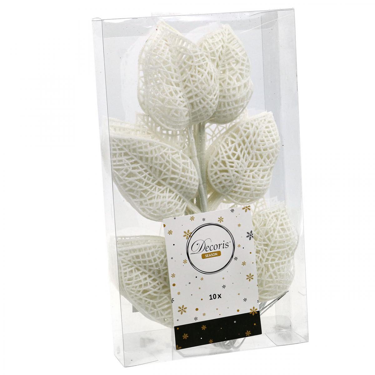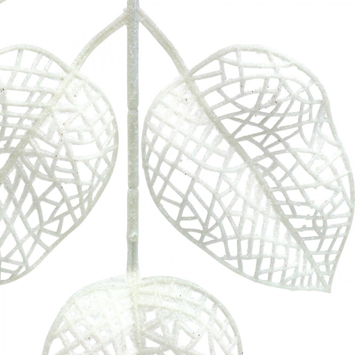 Winterdeko, Deko Blätter, Kunstzweig Weiß Glitter L36cm 10St