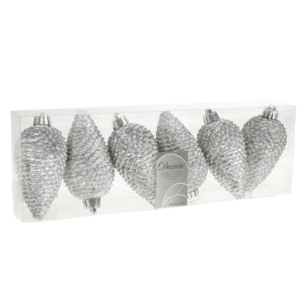 Zapfen Plastik Silber 8cm 6St. zum Hängen