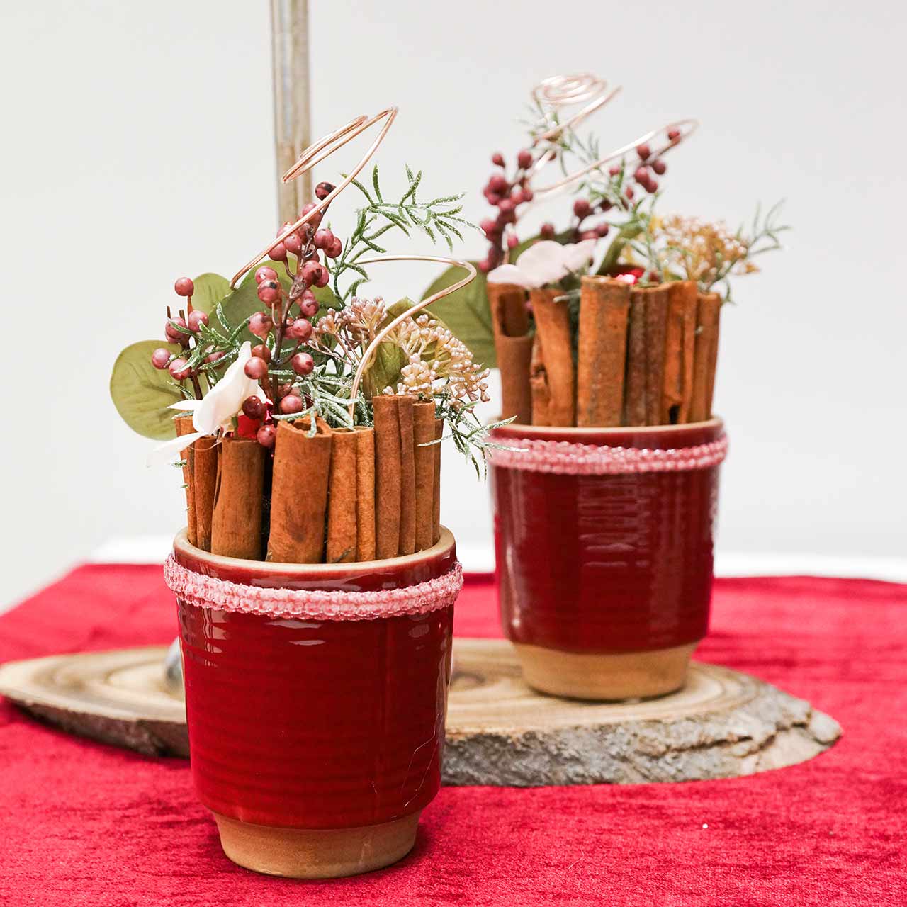 Wunderschön wirkt zum Beispiel auch origineller Christbaumschmuck, den Sie mit wenigen Handgriffen aus den Zimtstangen herstellen können. Fassen Sie dafür mehrere Röllchen zu einem kleinen Bündel zusammen, um das Sie Bast oder eine Kordel winden, und hängen Sie den natürlichen Anhänger anschließend zwischen Äpfel und Orangen an den Weihnachtsbaum. Davon abgesehen lässt sich Zimt auch sehr gut in außergewöhnlichen Tischschmuck für die Adventstafel verwandeln. Sie können die Stangen etwa mit Heißkleber auf einem geraden Teelichthalter anbringen und noch mit weihnachtlichem Dekoband verzieren oder als kleine Bündel auf den Plätzen Ihrer Gäste verteilen und auf diese Weise ganz besondere Tischkärtchen entwerfen.