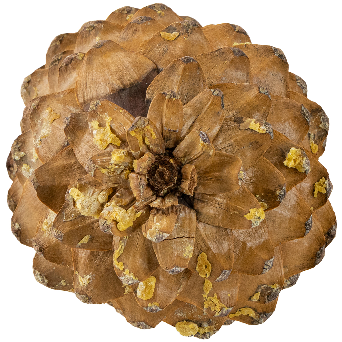 Der Zapfen der Zucker-Kiefer in Natur hat eine Größe von etwa 25 Zentimeter und kann als Naturprodukt je nach Packung etwas in der Größe variieren. Der ungefärbte Zapfen weist verschiedene Brauntöne auf, die je nach Betrachtungswinkel tolle Farbenspiele zeigen und ein Muster erzeugen, das leicht an das scheckige Fell eines Leoparden erinnert. So können Sie den eindrucksvollen Zapfen auch wunderbar für die Auslage Ihres Schaufensters nutzen und dort eine Dekoration zu den Themen Wald, Winter, Herbst oder auch Weihnachten gestalten. Aber auch auf Ihrer Fensterbank, in einer Deko-Schale für den Wohnzimmertisch oder in Ihrer Erntedankdekoration weiß der große Zapfen der Zucker-Kiefer zu punkten und ist ein echter Gewinn für Ihre Wohnräume.