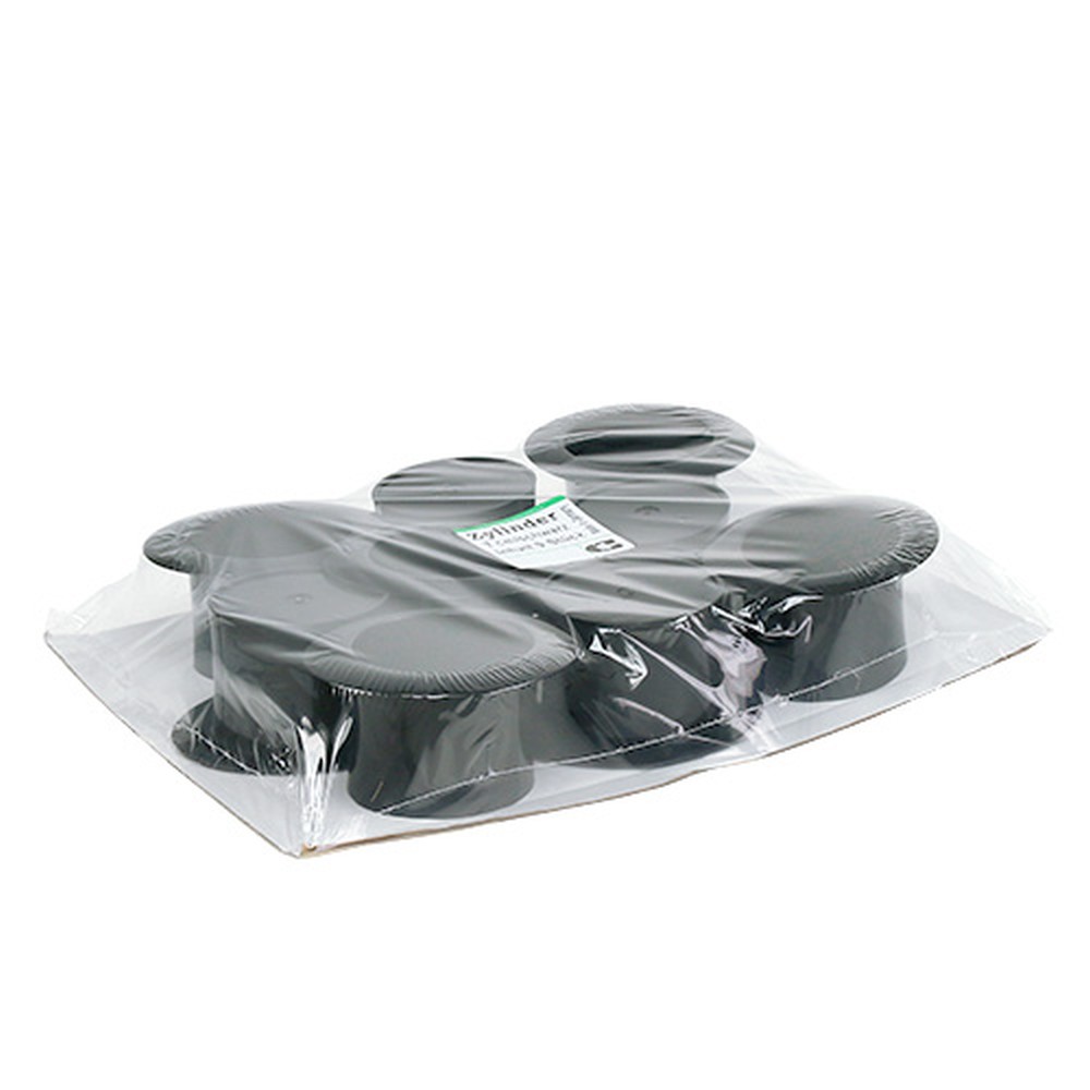 Geliefert werden die schwarzen Zylinder aus Kunststoff in einem Set zu insgesamt 9 Stück. Jeder Hut ist in etwa 9 Zentimeter hoch und besitzt eine ungefähr 8 x 7 Zentimeter große Stellfläche. Die Innenmaße betragen circa 7,5 x 6,5 Zentimeter, während die Außenmaße bei etwa 12 x 10 Zentimetern liegen.